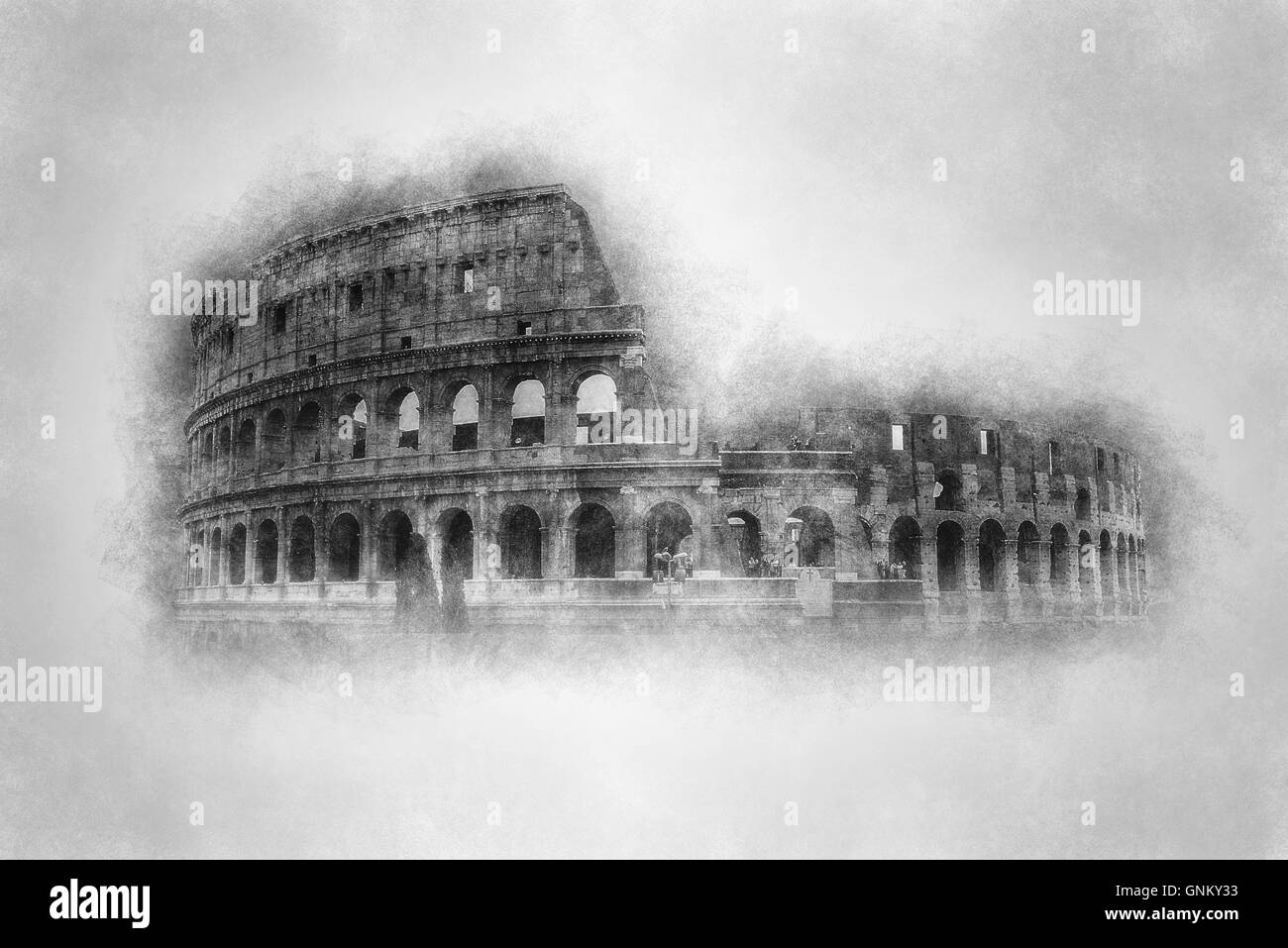 Dibujo A Lapiz De Estilo Vintage O Aguafuerte Con Papel De Tonificacion De La Historica Fachada Exterior Del Coliseo Roma Italia Con Copia Fotografia De Stock Alamy