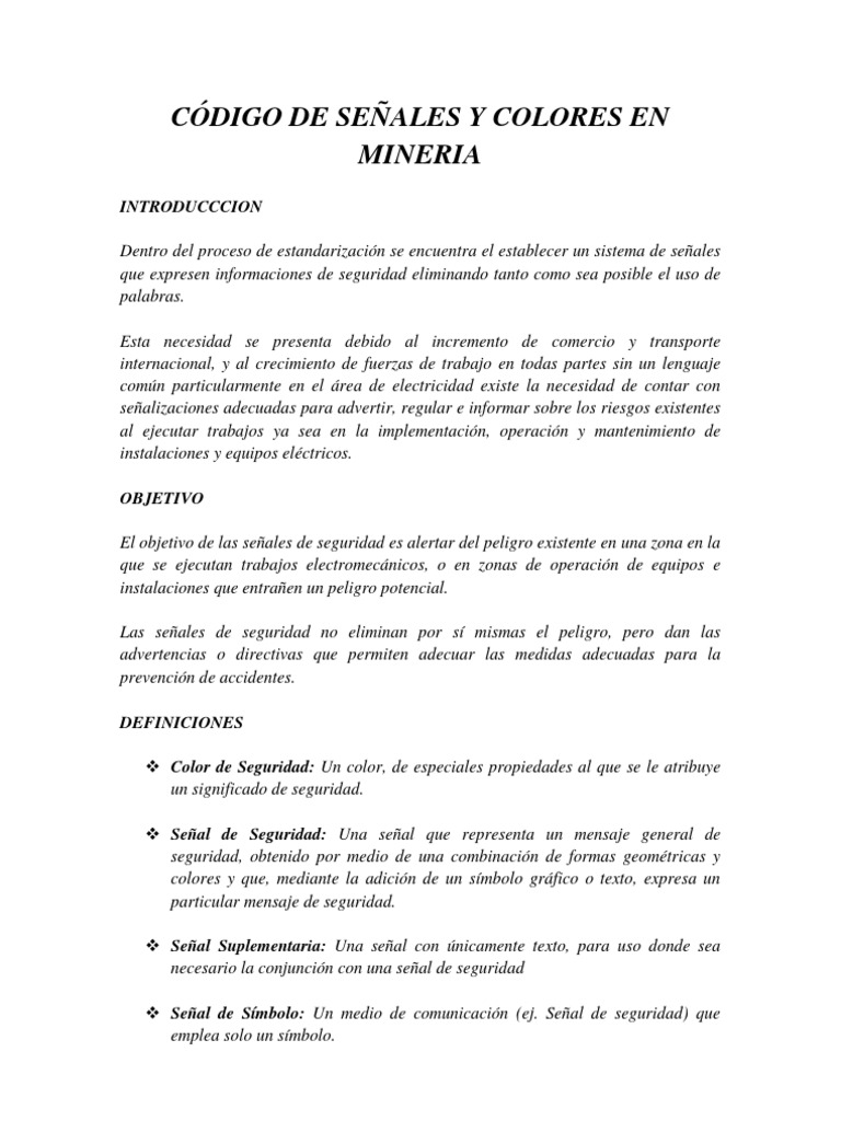 Codigo De Senales Y Colores En Mineria Los Simbolos Color