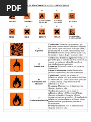 Tabla De Simbolos De Riesgo O Peligrosidad Calor Combustibles