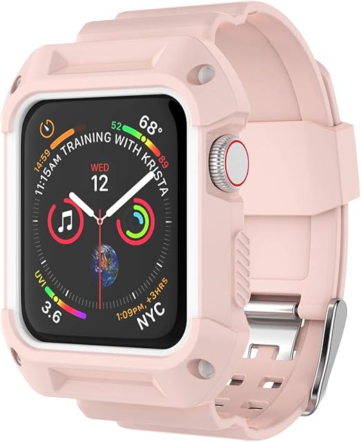 Amazon Com Njjex Correa Para Reloj Inteligente Con Funda Compatible Con Apple Watch De 1 654 In Silicona Suave Correa De Repuesto Ligera Compatible Con Apple Watch Series 3 2 1 1 654 In Rosado Blanco