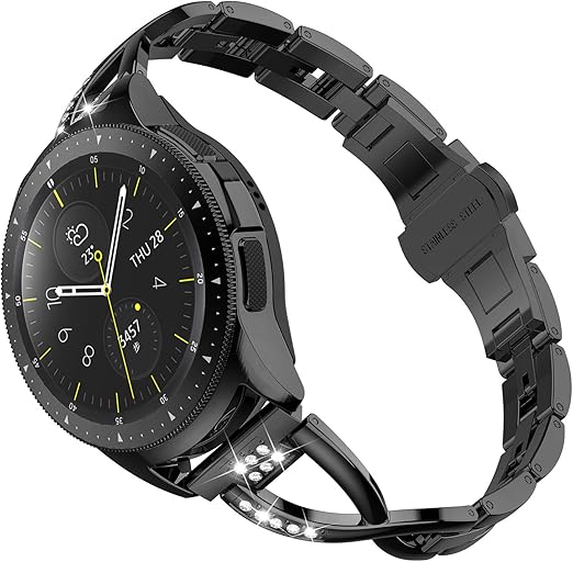 Amazon Com Toyouths Correa De Repuesto Para Reloj Inteligente Samsung Watch De 1 654 In Con Diamantes De Imitacion De Oro Rosa Para Samsung Watch 1 654 In R810 Galaxy Active 1 575 In R500 0 787 In Negro