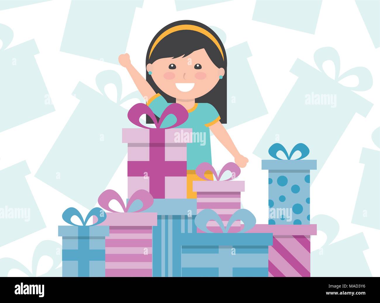 Lindo Joven Chica Con Apiladas Cajas De Regalos Kids Feliz Cumpleanos Imagen Vector De Stock Alamy