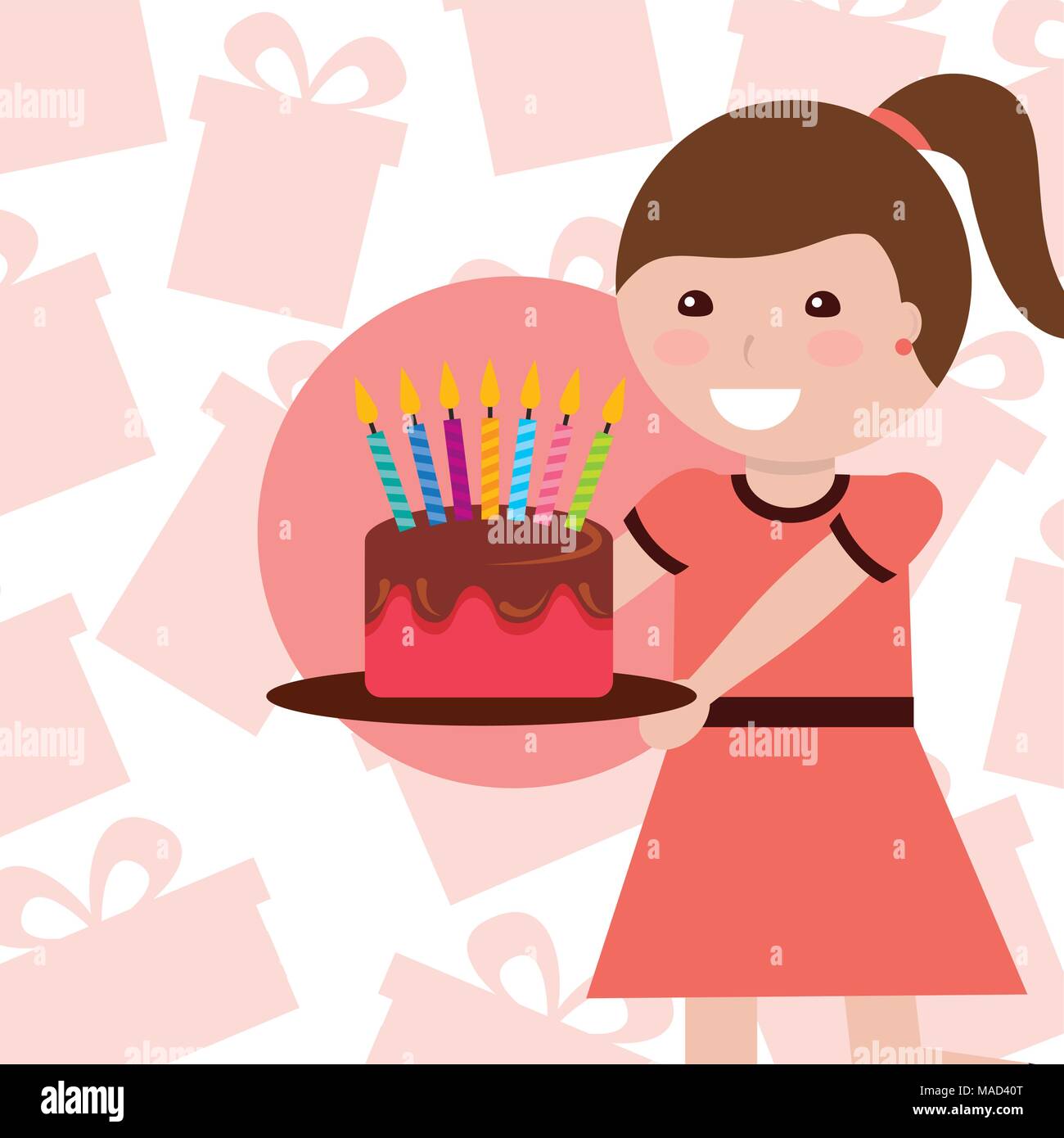 Joven Chica Sujetando Una Torta Con Velas Ninos Feliz Cumpleanos Imagen Vector De Stock Alamy