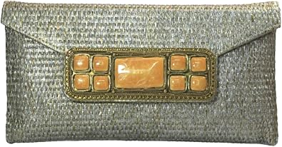 Bolso Clutch De Fiesta Rafia Dorado Plateado