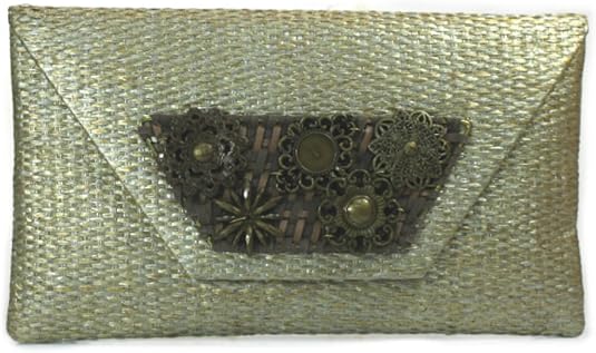 Bolso Sobre De Fiesta De Rafia Con Borde Dorado Nana Jule S