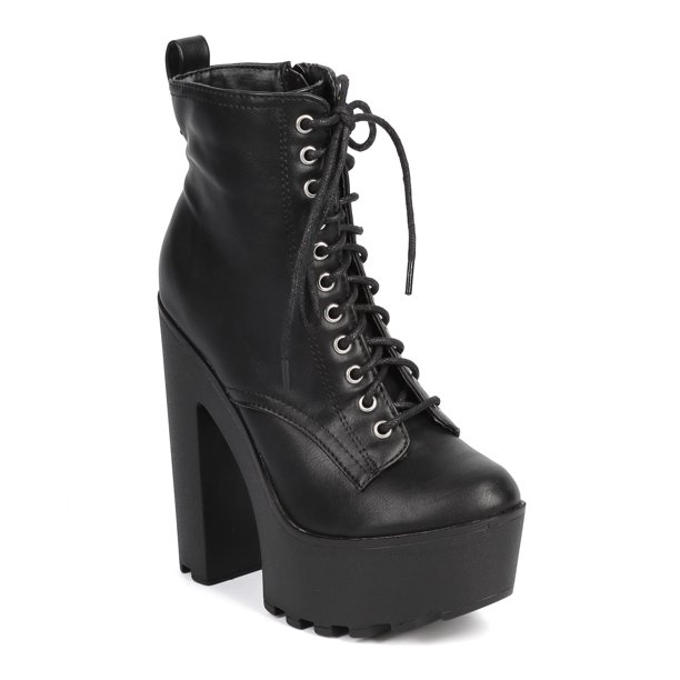Breckelles New Women Breckelles Jamie 11 Leatherette Lace Up Lug Sole Platform Combat Boot Walmart Com Walmart Com
