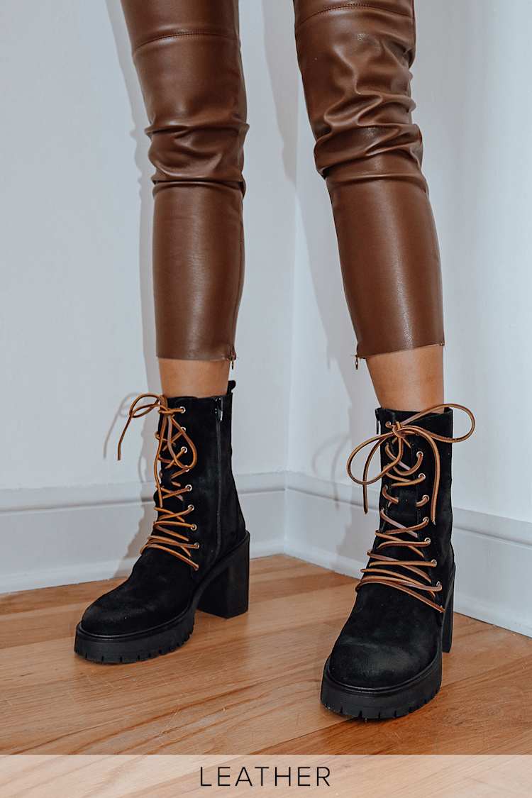 When is comes to high fashion boots and making a statement taller is always better. Add edge and 'tude to your style with a pair of sassin' lace up heels, including super on-trend perspex lace up heels and cool AF stilettos. Take control of your style by arming yourself with combat boots.