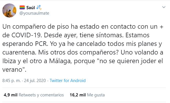 Un Tuitero Denuncia Que Su Companero De Piso Se Ha Ido A Ibiza A Pesar Del Contacto Con Positivo De Covid 19 Noudiari Es