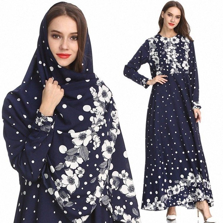 Dark Blue Dot Print Maxi Dress Flower Hijab Jilbab Abaya Marocaine Moslim Muslim Long Skirt Moroccan Jalabiya Kaftan Dubai D631 Islamic Clothing Aliexpress