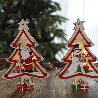 Mobestech 2 Piezas De Arbol De Navidad De Madera Con Pilas Iluminaron Adornos De Mesa De