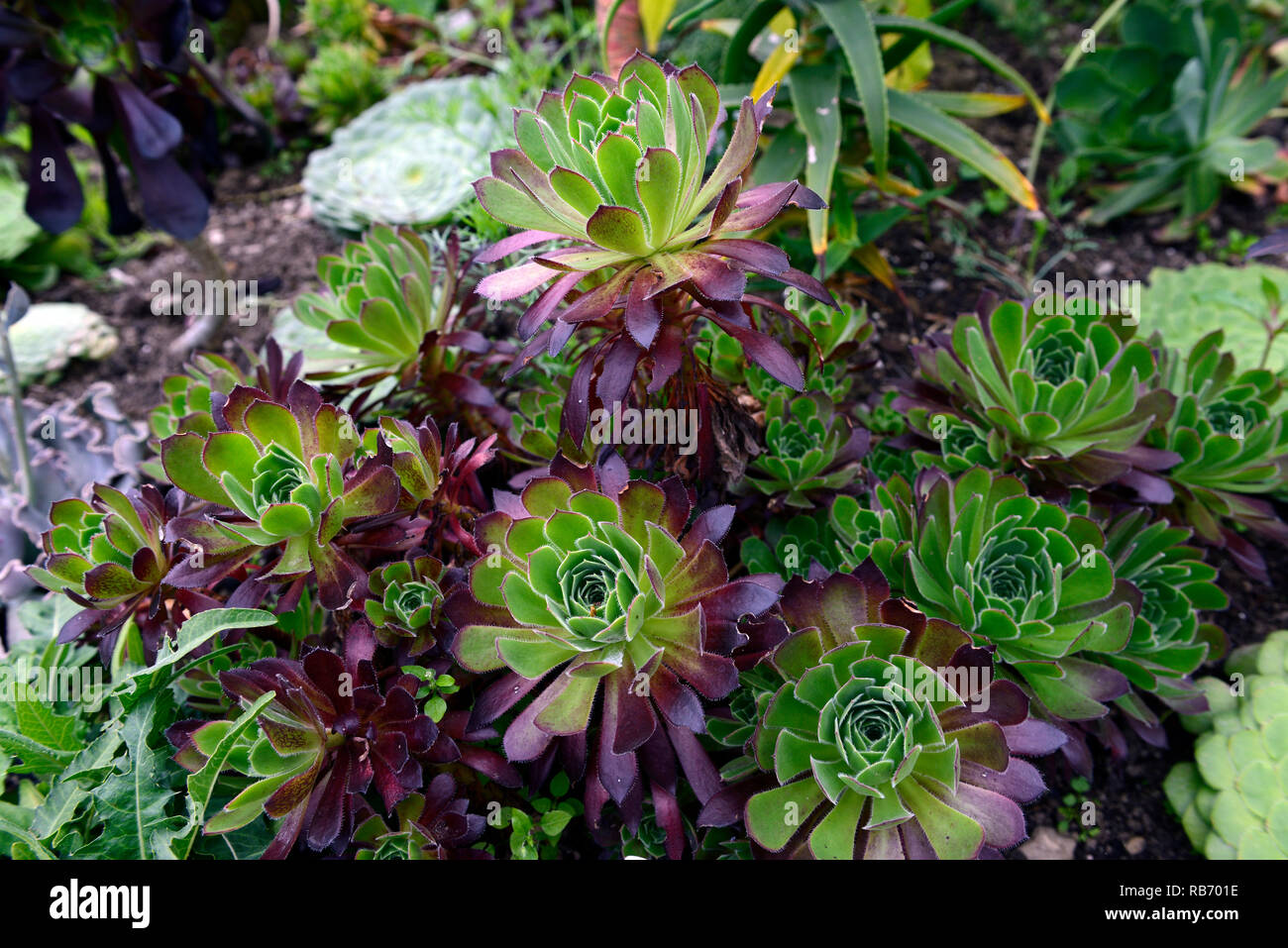 Aeonium Arboreum Zwartkop Aeonium Arboreum Var Atropurpureum Schwarzkopf Succulent Succulents Mix Mixed Display Garden Rm Floral Stock Photo Alamy