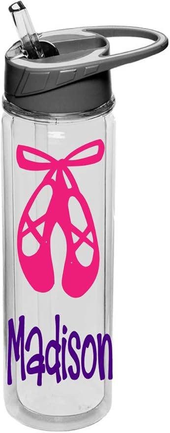 Amazon Com Botella De Agua Deportiva Personalizada Con Diseno De Zapatillas De Ballet Con Nombre Sin Bpa Botella Transparente Con Lunares Diseno De Vinilo Sports Outdoors