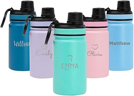 Amazon Com Mira Botella De Agua Aislada De Acero Inoxidable Personalizada De 12 Oz Botella Deportiva Personalizada Con Grabado Laser Termo Mantiene El Frio Durante 24 Horas Caliente Durante 12 Horas
