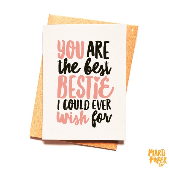 30 “A friend is one with whom I share happiness, but a best friend is one with whom I can share grief, too Happy birthday to my best friend!” Happy Birthday quotes for a friend to make them feel special 31 “I am so proud to be your best friend May you have a happy and healthy birthday!” 32 “Best wishes on your birthday!. If you’re writing a birthday card message for your mom or sister, a great friend, a beloved family member, or your loved one, make sure to use one of these birthday sentiments to wish her well We’ve got birthday wishes for every special girl in your life—from her first birthday to her 80th birthday. Bestie Happy Birthday Greeting Card Best Friend, Pal FlashOnAString From shop FlashOnAString 5 out of 5 stars (421) 421 reviews $ 349 Favorite Add to Birthday Card Women's Best Friend Handmade/ Personalised Sister/ Bestie / Auntie / 18th 21st 25th 30th 40th 50th AkCraftCrazy From shop AkCraftCrazy.
