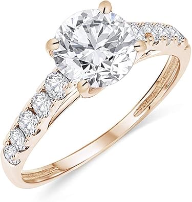 Amazon Com Comprar Jewels Anillo De Compromiso De Oro Autentico De 14 Quilates Solitario Redondo a Circonita Cubica Jewelry