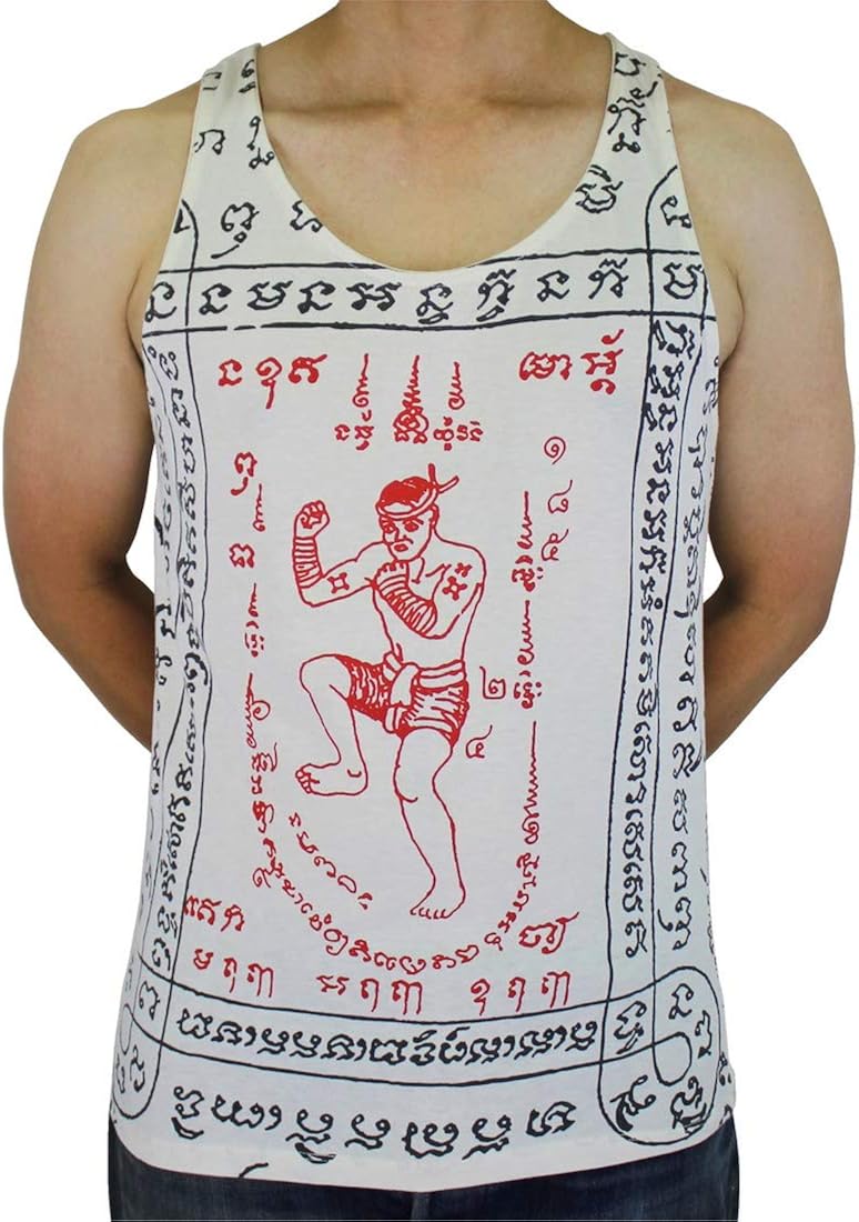 Work Muay Thai Tattoo Sak Yant Boxer Kickboxing Tank Top White Wk T13 Size M At Amazon Men S Clothing Store