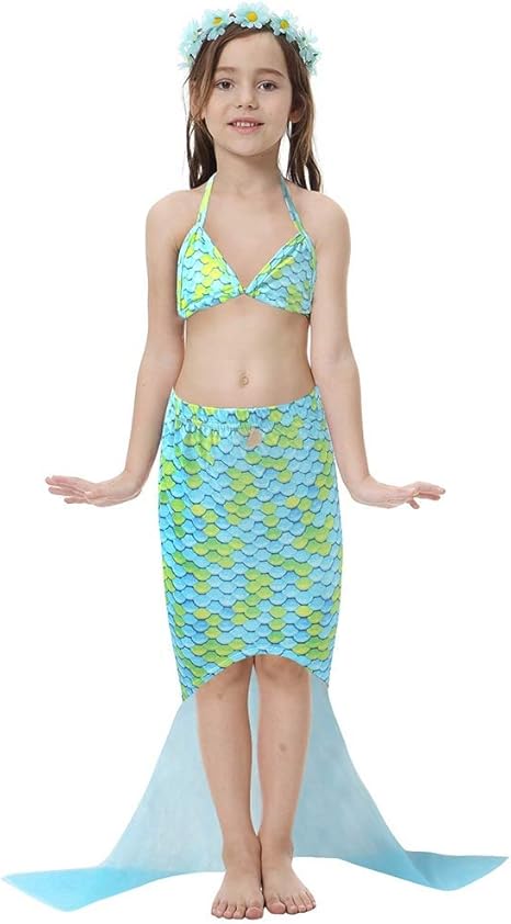 Ylywcg Costume Da Bagno A Coda Di Sirena For Bambini Set Da 3 Pezzi For Bikini Da Ragazza Perfetto For Ragazze Dai 3 Ai 12 Anni Vacanze Al Mare Feste In Piscina