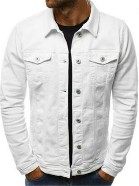 Did you scroll all this way to get facts about mens white denim?. Whether you think solid black, white, heather grey, blue grey, or light teal would match best with your denim jacket, you'll have plenty of options to choose from here!. Men's Winter Warm Jean Jackets and Coats Fleece Lined Thicken Thermal Denim Trucker Jacket Outerwear QAQWER CDN$9999 CDN$ 99 99 Not applicable Red/Black/White/Pink Ripped Denim Jeans Jackets Hip Hop Streetwear Holes Casual Coat Not applicable.
