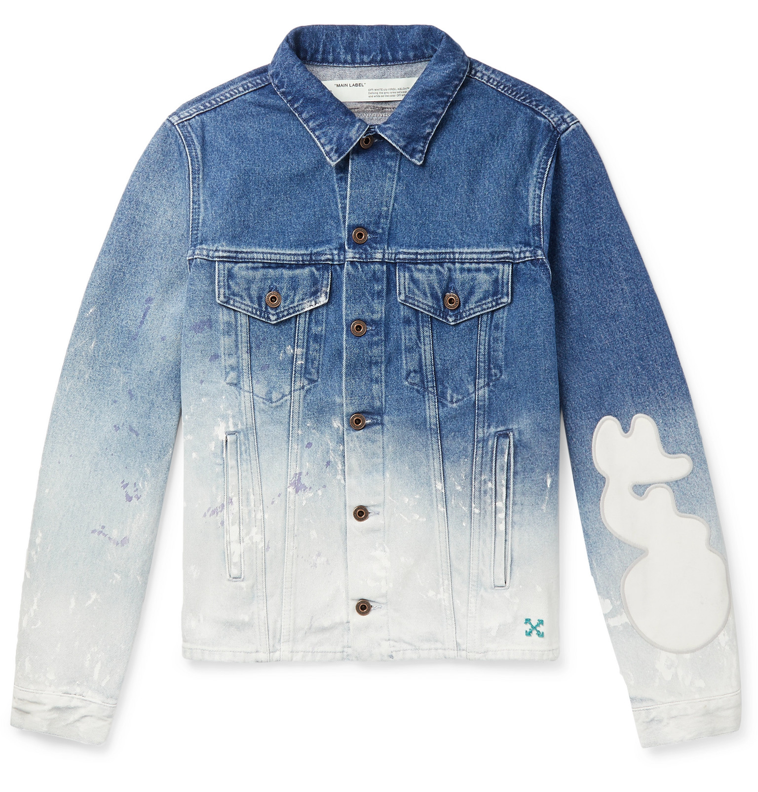 Off White Slim Fit Paint Splattered Degrade Denim Jacket Men Blue The Fashionisto