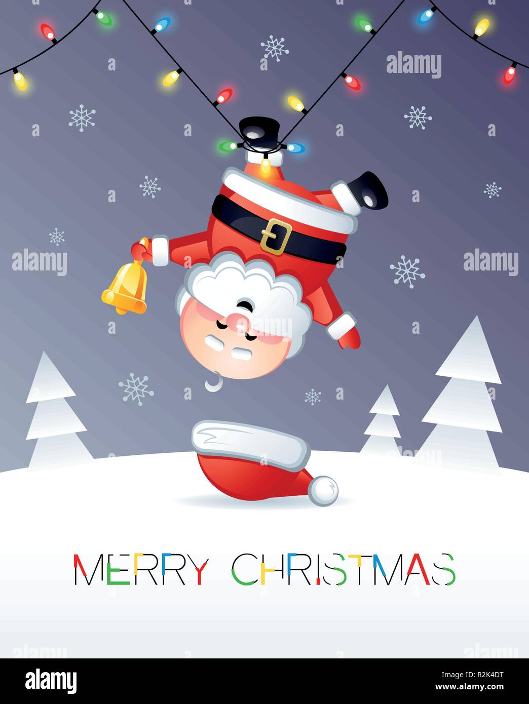 Feliz Navidad Tarjeta De Felicitacion Con Divertidos Santa Claus Colgado Boca Abajo Ilustracion Vectorial Imagen Vector De Stock Alamy