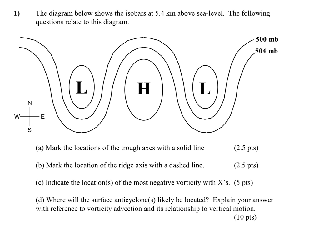 Below is an altitude oxygen chart that extrapolates oxygen percentages to real altitude, which you can use in conjunction with Hypoxico systems This chart will help you find oxygen levels at altitudes you are interested in, starting with the oxygen content of the air at sea level You can consult with a Hypoxico representative if you have. The rate at which volcanism occurs on the seafloor and along midocean ridges (sea floor spreading rates) will play a role in where sea level occurs on continents and other land masses High rates of volcanism on the seafloor volumetrically displaces water out of the ocean basin producing higher sea levels (called transgression of sea level). 1) The diagram below shows the isobars at 54 km above sealevel The following questions relate to this diagram 504 m (a) Mark the locations of the trough axes with a solid line (b) Mark the location of the ridge axis with a dashed line (c) Indicate the location(s) of the most negative vorticity with X's.