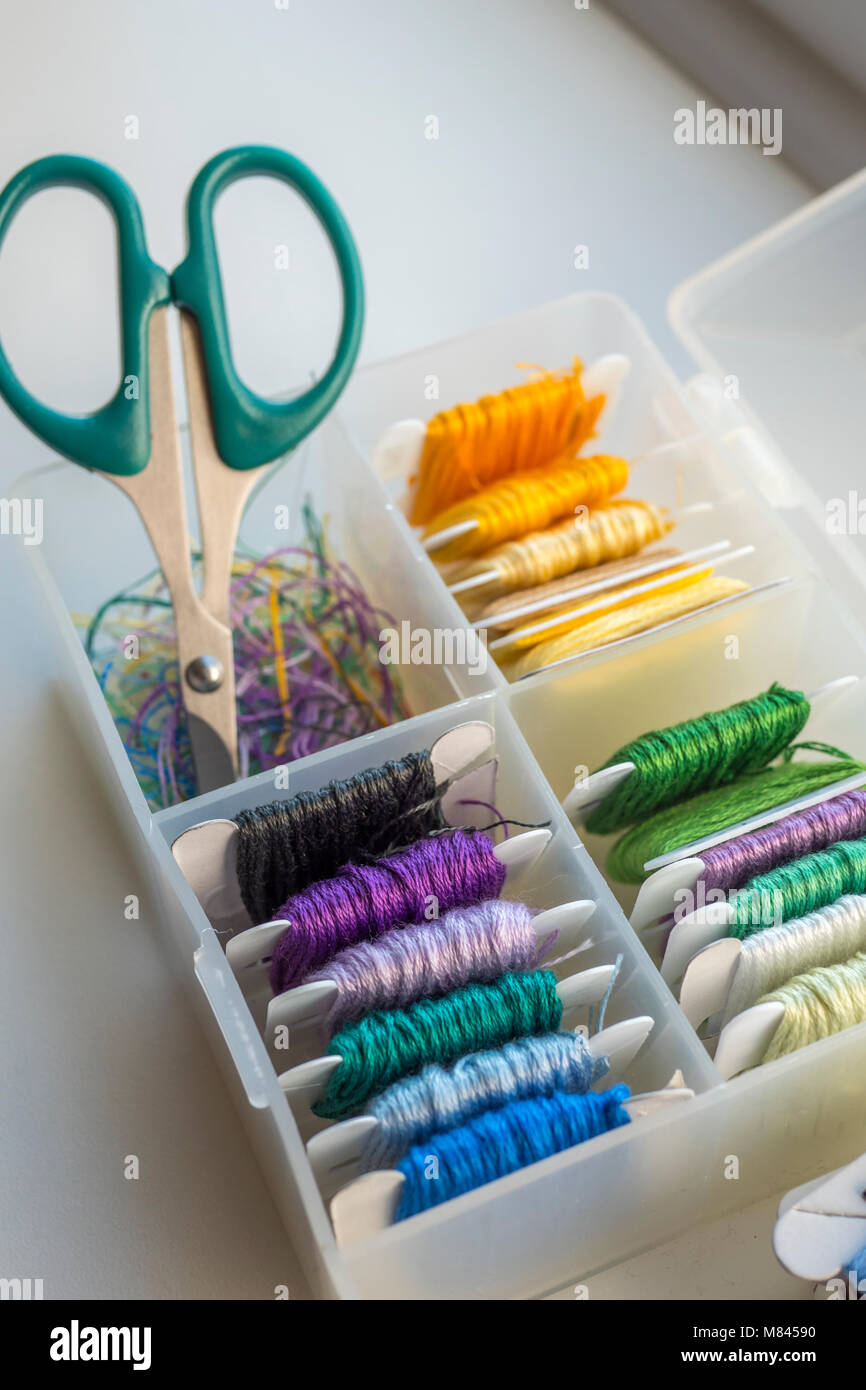 Hilos Para Bordar Punto De Cruz En Una Caja De Almacenamiento Fotografia De Stock Alamy