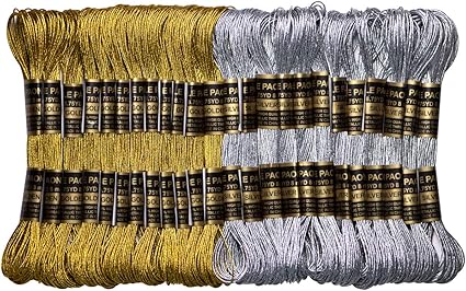Amazon Com 24 Madejas Hilo De Bordado Metalico Hilos De Punto De Cruz Pulseras De Amistad Artesania Hilo Dorado Y Plateado Arte Manualidades Y Costura