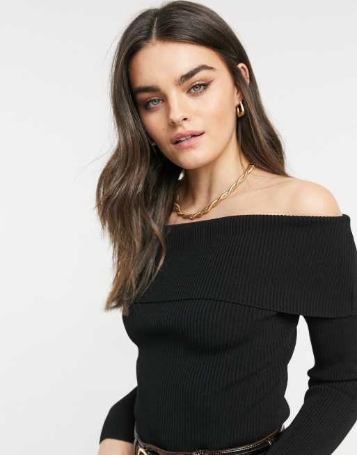 Other Stories Off Shoulder Knit Long Sleeve Top In Black Asos