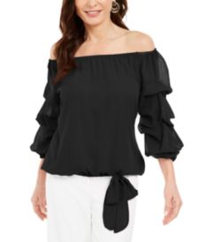 Our selection of glamorous blouses are a sharp alternative to your goto Little Black Dress Fabrics are luxurious, with silk, satin, and sequins at the heart of the edit Make a statement with necklines, choosing either halter neck blouses, offtheshoulder tops, or those with smart keyhole details. Solid black or white offtheshoulder blouses are versatile enough to wear with jeans, slacks or skirts A ruffled neckline adds a classic, decorative touch to this contemporary cut Look for the clean lines and crisp designs of AQUA, Kobi Halpern or Nation LTD for offtheshoulder tops suitable for a night out. Shop the latest in black off the shoulder tops with trendy bell sleeves, drapey silhouettes & more 50% off your 1st order!.