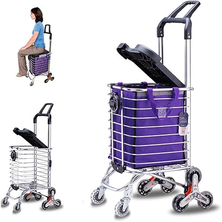 Aimcae Carritos De La Compra Plegables Carro De La Compra Con Asiento Y Portavasos Bolsa Desmontable De Lona Ideal Para Personas Mayores Amazon Es Hogar
