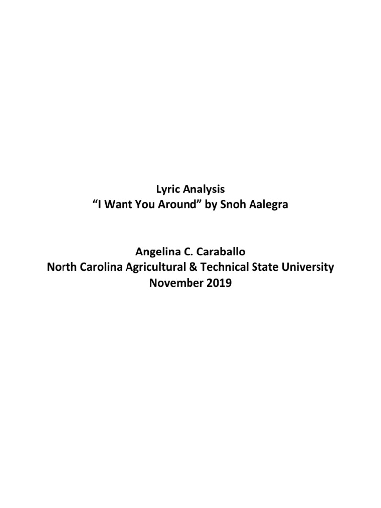 Lyric Analysis I Want You Around By Snoh legra Pop Music Recorded Music