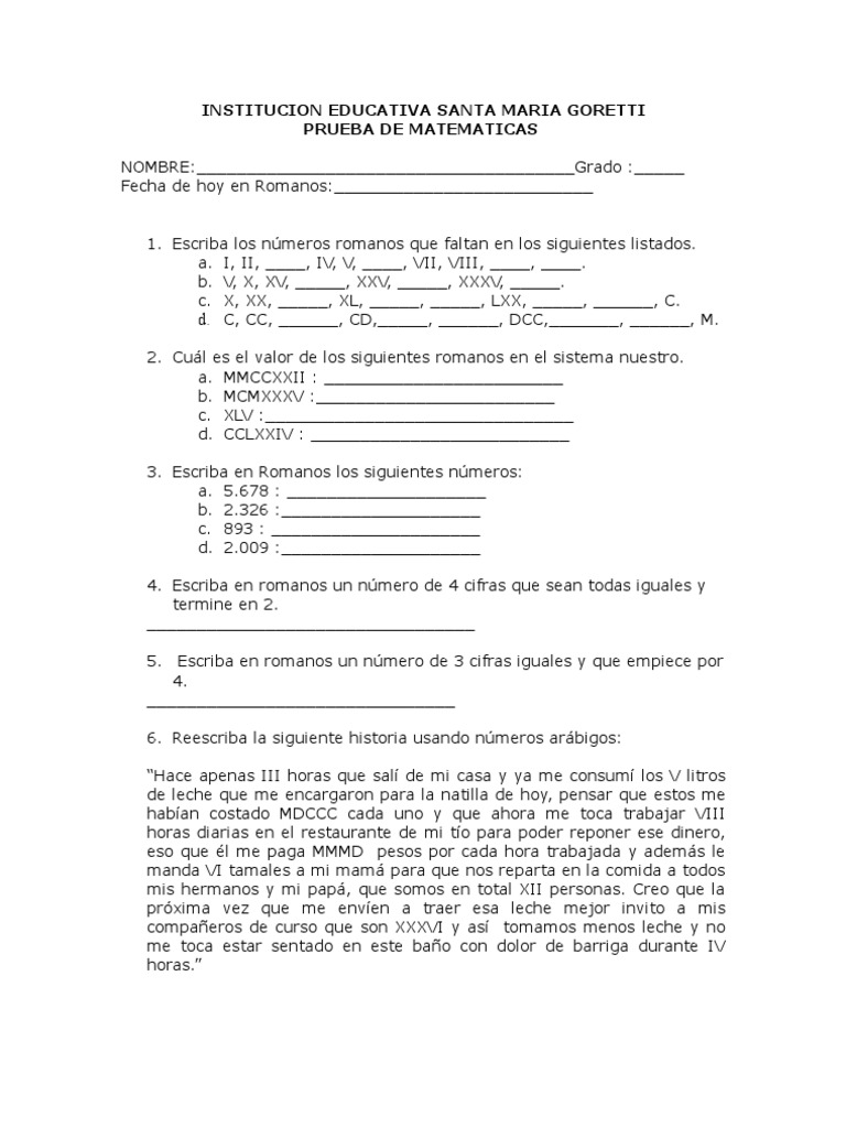Ejercicio De Problemas Numeros Romanos