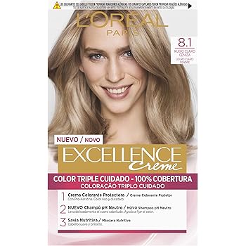 L Oreal Paris Excellence Creme Tinte Permanente Tono 8 1 Rubio Claro Ceniza Amazon Es