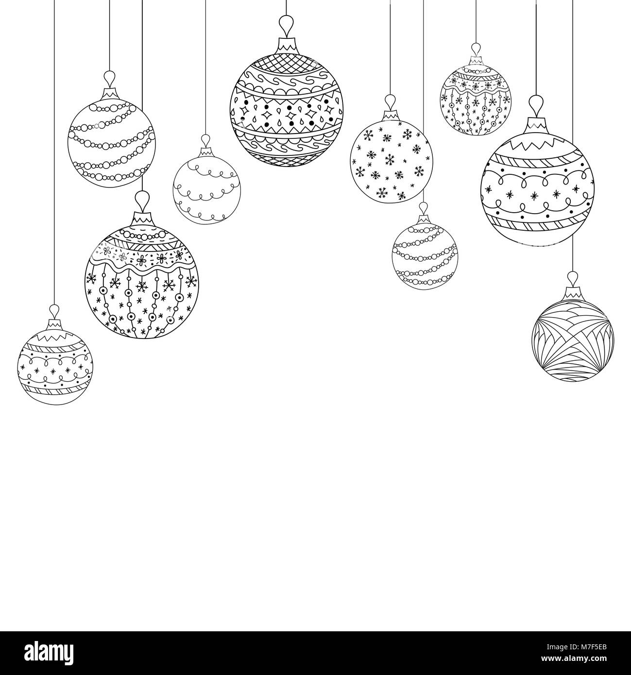 Tarjeta De Navidad Vectores De Dibujo A Mano Juguetes Bolas Del Arbol De Navidad Saludo De Navidad De Invitacion De Fondo Pagina De Libro Para Colorear Imagen Vector De Stock Alamy