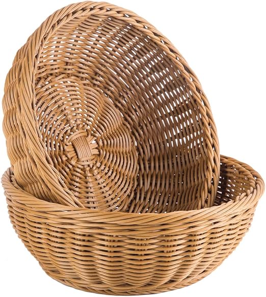 Amazon Com Cestas De Mimbre Para Servir Cesta Redonda De Ratan De 12 0 In Cesta De Comida Tejida Para Cocina Marron Kitchen Dining