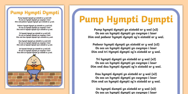 Five Humpty Dumptys Welsh Second Language Song Lyrics Welsh