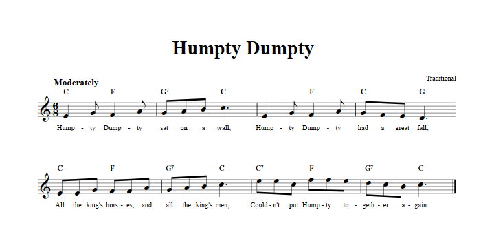 Humpty Dumpty Chords Lyrics And Sheet Music For C Instruments