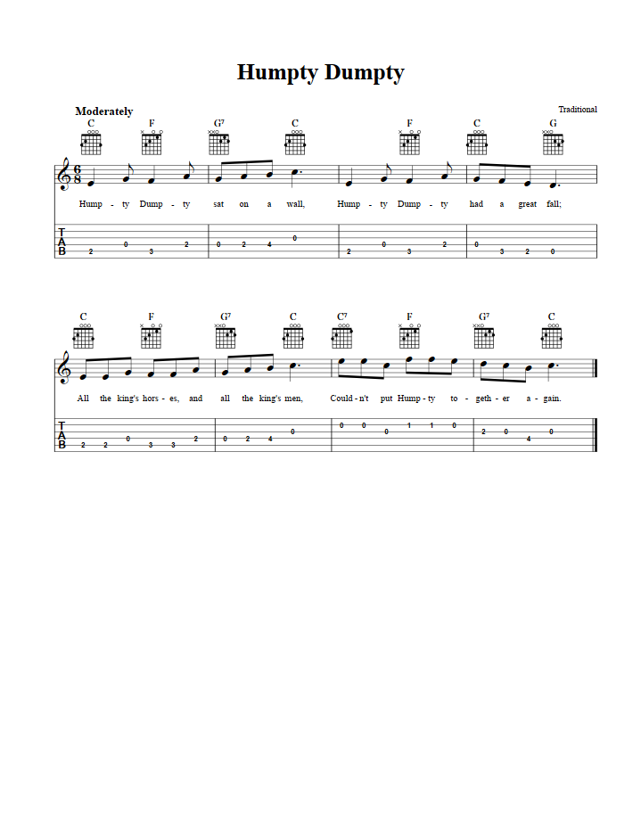 Humpty Dumpty Chords Sheet Music And Tab For Guitalele With Lyrics