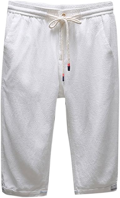 Zhhlinyuan Verano Playa Lino Casual 3 4 Pantalones Para Hombres Adolescentes Chicos Drawstring Bolsillo Pants Pantalones Cortos Solid Color Amazon Es Ropa Y Accesorios