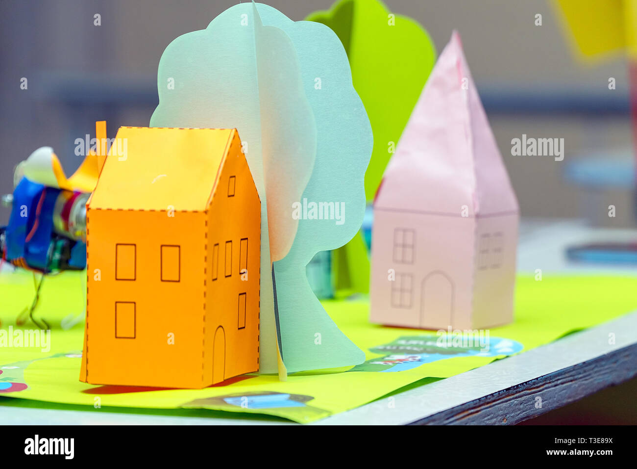 Casa Naranja Y El Arbol Verde Hechas De Papel Children S Manualidades Con Papel Soft Focus Fotografia De Stock Alamy