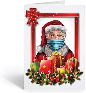 Amazon Com Covid Tarjeta De Navidad Pandemia Divertida Papa Noel Con Una Mascara Facial Office Products