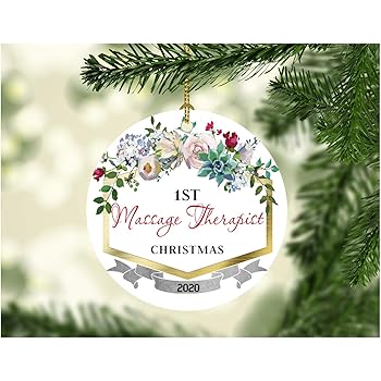 Amazon Com Primera Navidad Adornos Masaje Terapeuta Nuevo Trabajo Ideas De Regalo Navidad Decoraciones Para El Hogar Felicitaciones En Nuevo Trabajo Buena Suerte Regalo Ideas Familia Divertido Navidad 3 Mdf Plastico Blanco