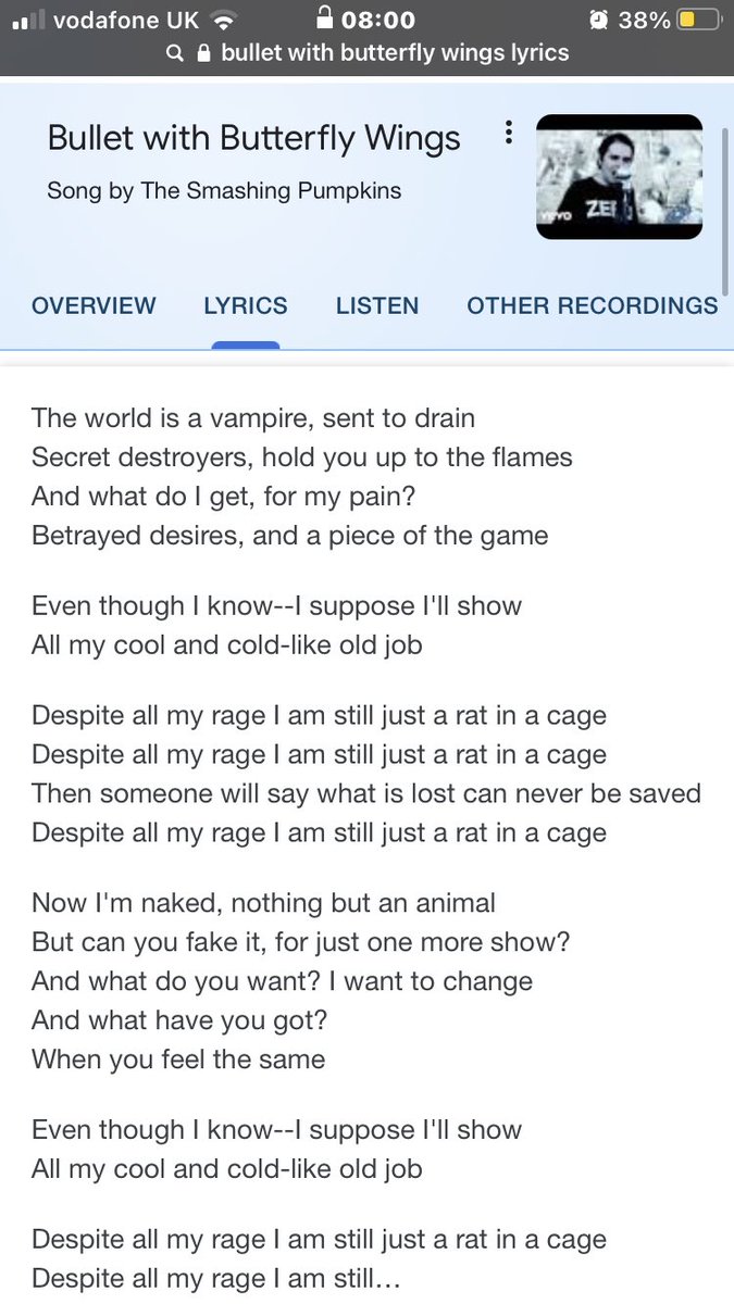 Still Just A Rat In A Cage Smashing Pumpkins Bullet With Butterfly Wings Lyrics Youtube