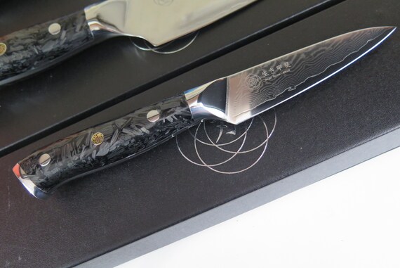 Damascus Japanese Chef Knife Aus10v Paring Knife Cast Carbon Etsy