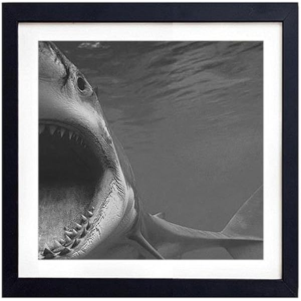 Amazon Com Glitzfas Great White Shark Art Print Black Wood Framed Wall Art Picture For Home Decoration Black And White 14 X14 35cmx35cm Framed Posters Prints