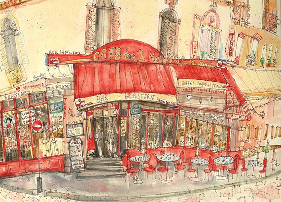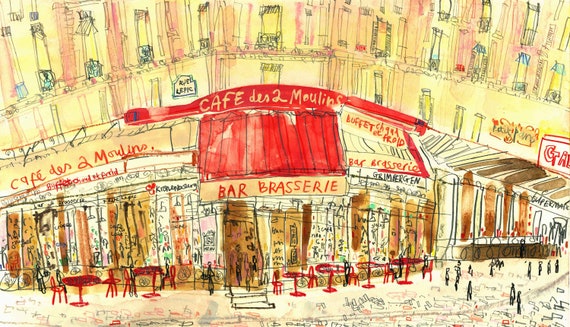 Amelie Paris Cafe Cafe Des Deux Moulins Paris Cafe Art Etsy