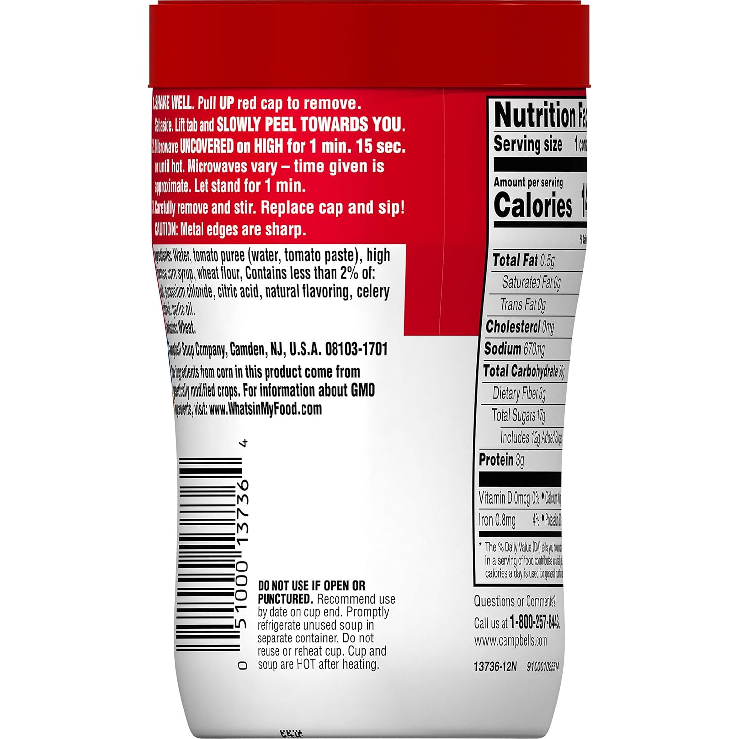Campbell's® Chunky® Chicken Noodle Soup Microwavable Bowl is a ready to eat soup that works just as hard as you do Expect bold, big flavors in every bite Loaded with chunks of chicken meat without antibiotics, 15 grams of protein, veggies and hearty egg noodles, Campbell's® Chunky® Chicken Noodle Microwavable Soup—Soup That Eats Like a. For generations, people have trusted Campbell's Soup to provide authentic, flavorful and readily available soups, meals, and recipes Learn more today!. CAMPBELL'S, condensed, Tomato Soup Total Fat 04g Dietary Fiber 11g Protein 15g Calcium 1300mg Iron 059mg CAMPBELL'S, condensed, Tomato Soup contains 71 calories per 100 g serving One serving contains 04 g of.
