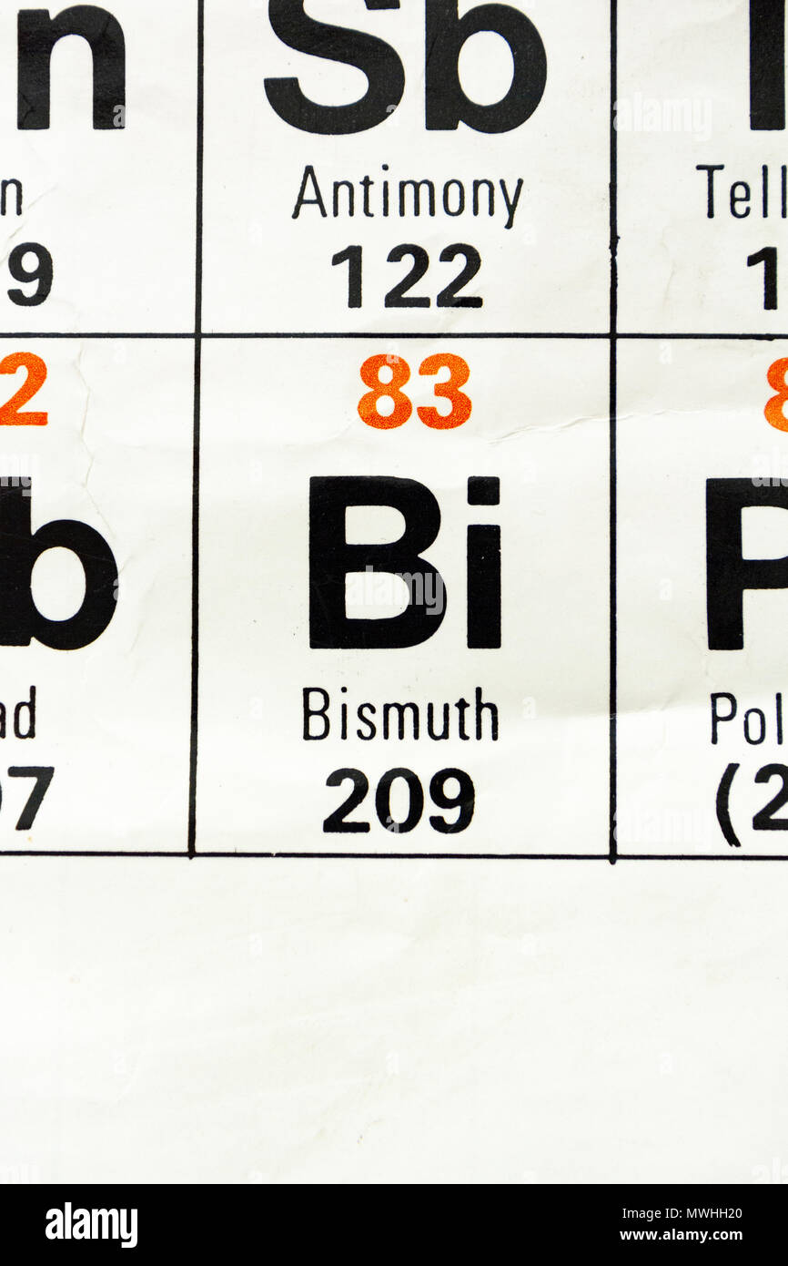 El Bismuto Bi Tal Como Aparece Una Tabla Periodica De Secundaria Del Reino Unido Fotografia De Stock Alamy