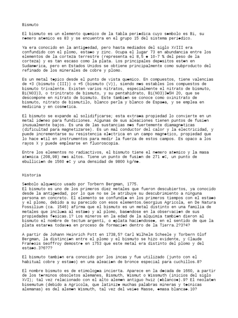Las combinaciones del bismuto ya eran conocidas en la antigüedad, pero en aquellos tiempos el bismuto no se diferenciaba del plomo;. El bismuto es uno de los elementos químicos que integran la Tabla Periódica de Elementos Mencionado así, estaríamos siendo poco fieles a un metal que posee características muy sorprendentes y poco difundidas Lo primero que tenemos que mencionar es que como elemento químico, integra el lote de los metales y fue uno de los primeros 10 en ser descubierto. “Revista C2, Ciencia y Cultura, año 05, No 02, es una publicación semanal editada por Leonardo da Vinci, Divulgación y Promoción, AC, calle San Lorenzo No.