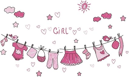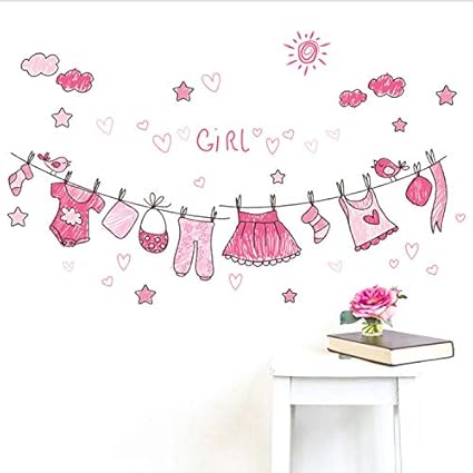 Gkawhh Ropa De Secado Tendedero Etiqueta De La Pared De Dibujos Animados Bebe Nursery Chica Dormitorio Decoracion Diy Tatuajes De Pared Amazon Es Hogar